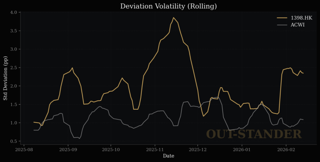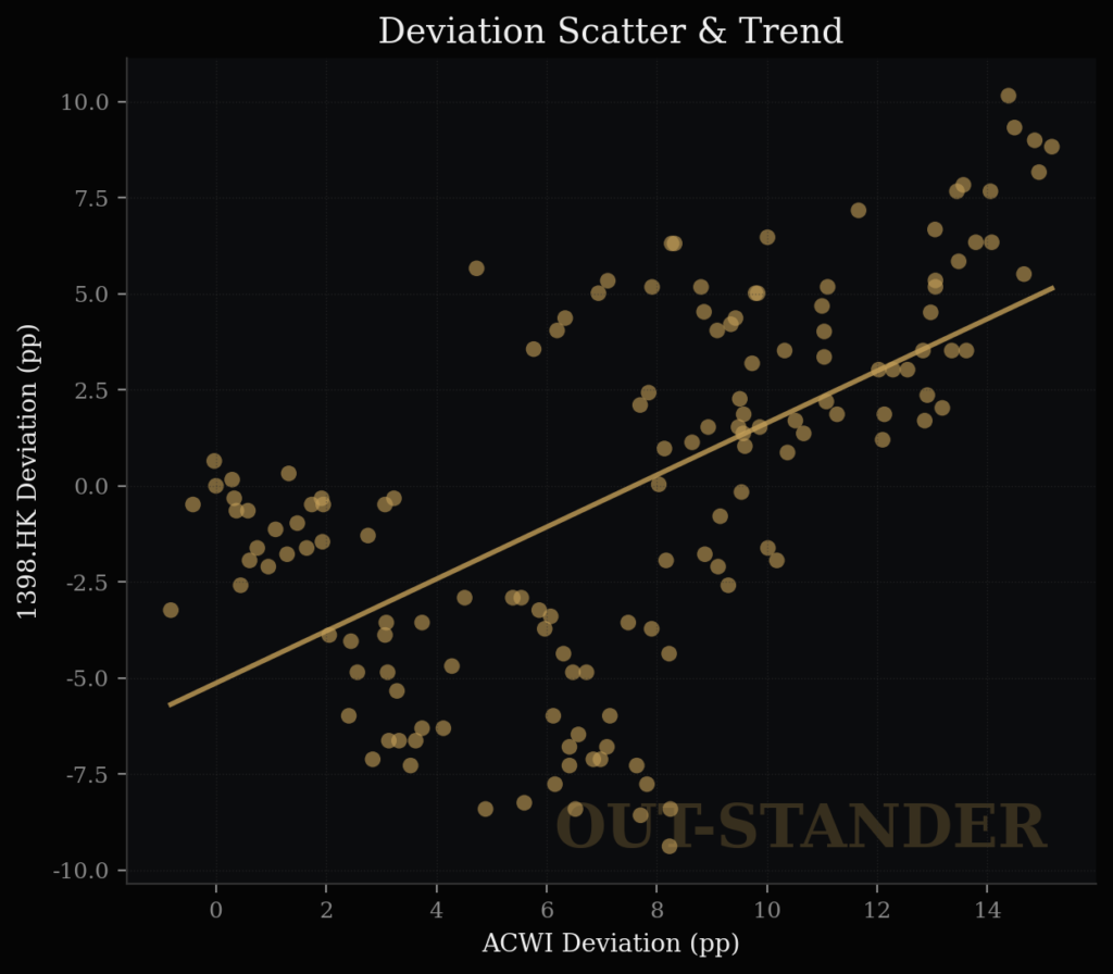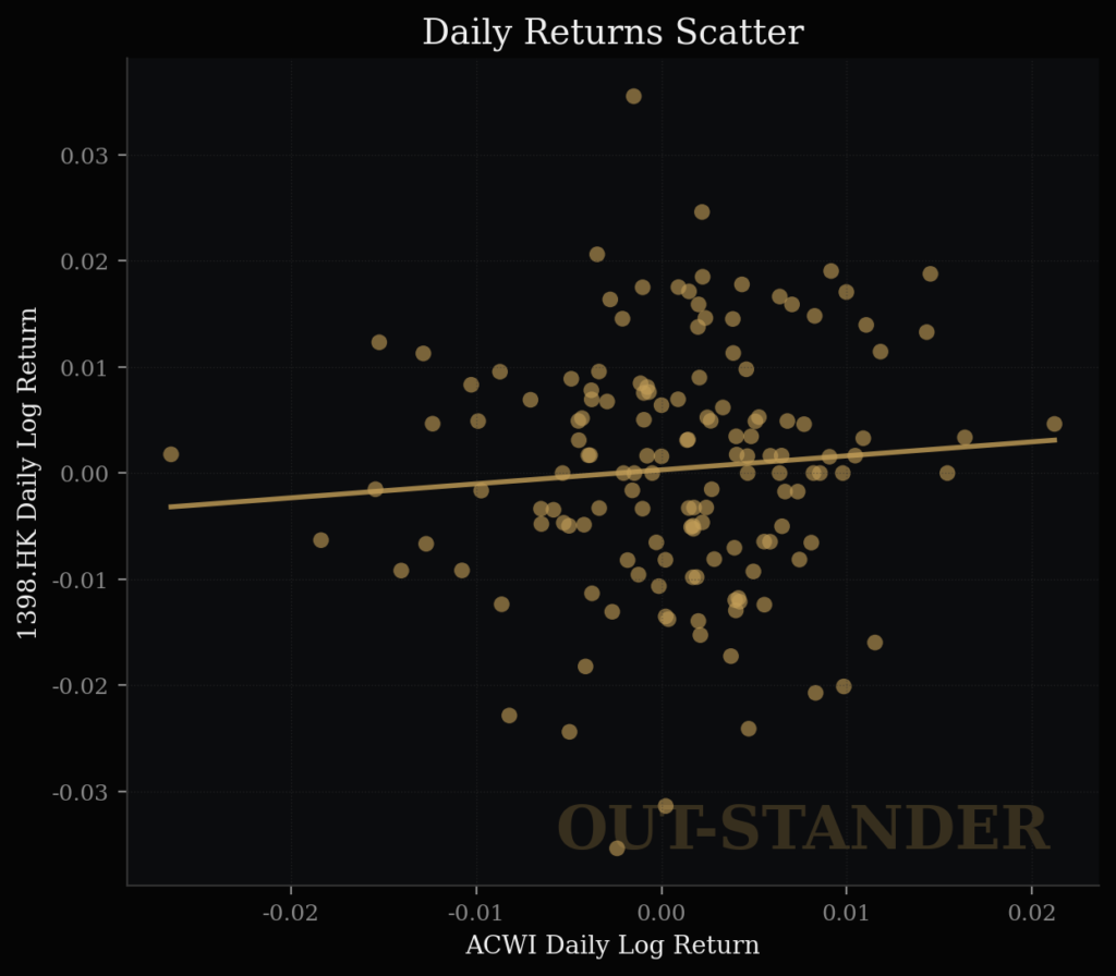 ・市場が1%上がった時期のICBCの上昇率は0.67%。