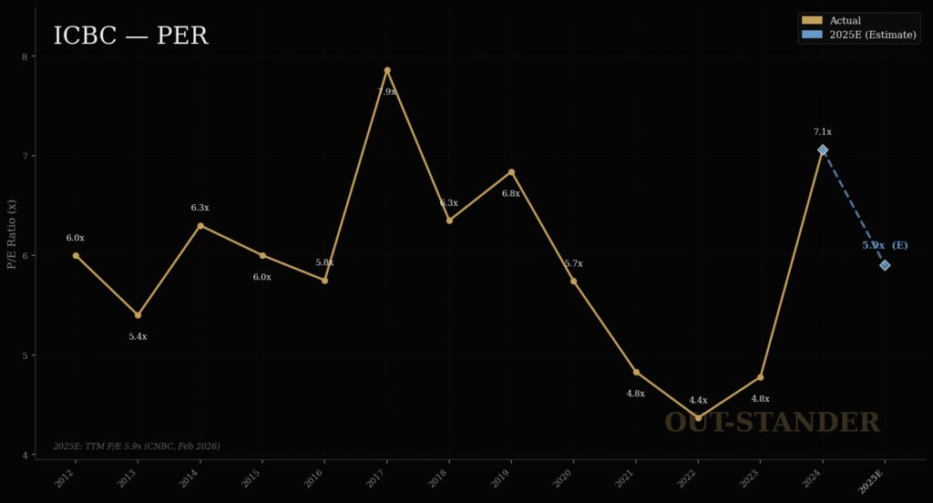 ICBCのPER(株価収益率)が