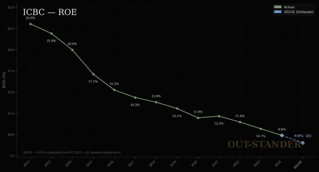 ICBCのROEが低下傾向である