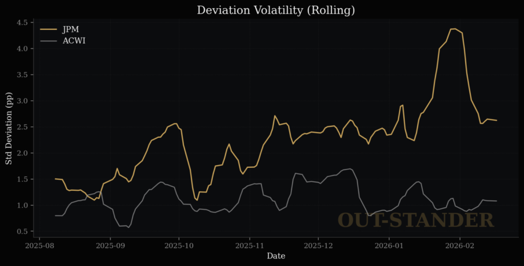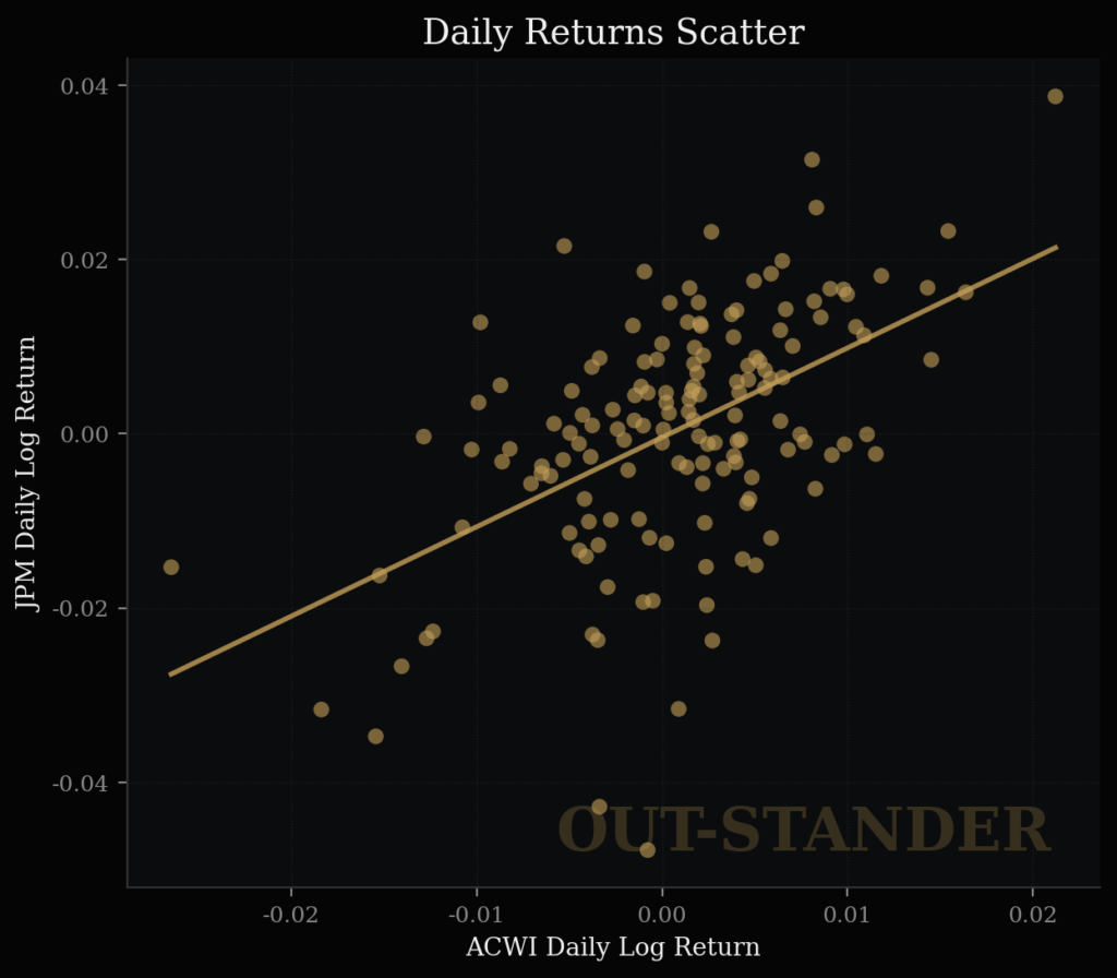 ・市場が1%上がった時期のJPMの上昇率は、0.71%。