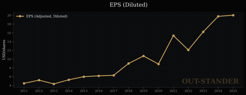 ・EPS(1株当たり当期利益):+11.29% / 年